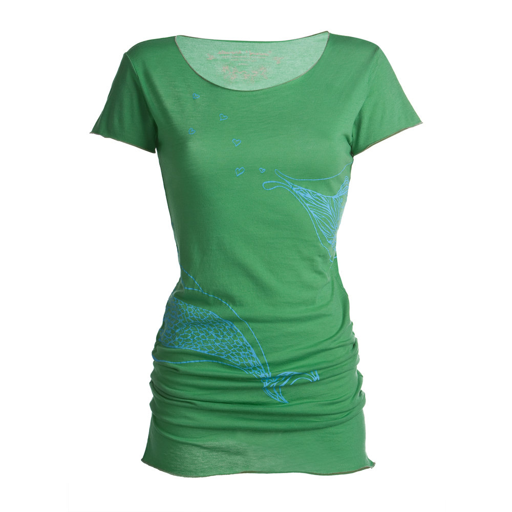Stewart&Brown Shirt Kisser Fish, langes Shirt mit kurzen Ärmeln und farbigem Aufdruck, das auch auch als Mini-Kleid getragen werden kann. Erhältlich in den Farben Clover (Klee-Grün) und Violet, aus der exklusiven Stewart+Brown Organic Cotton Linie. Die feinste Pima Baumwolle besteht aus besonders langstapeligen Fasern, die eine besonders hohe Qualität der Verarbeitung ermöglichen.